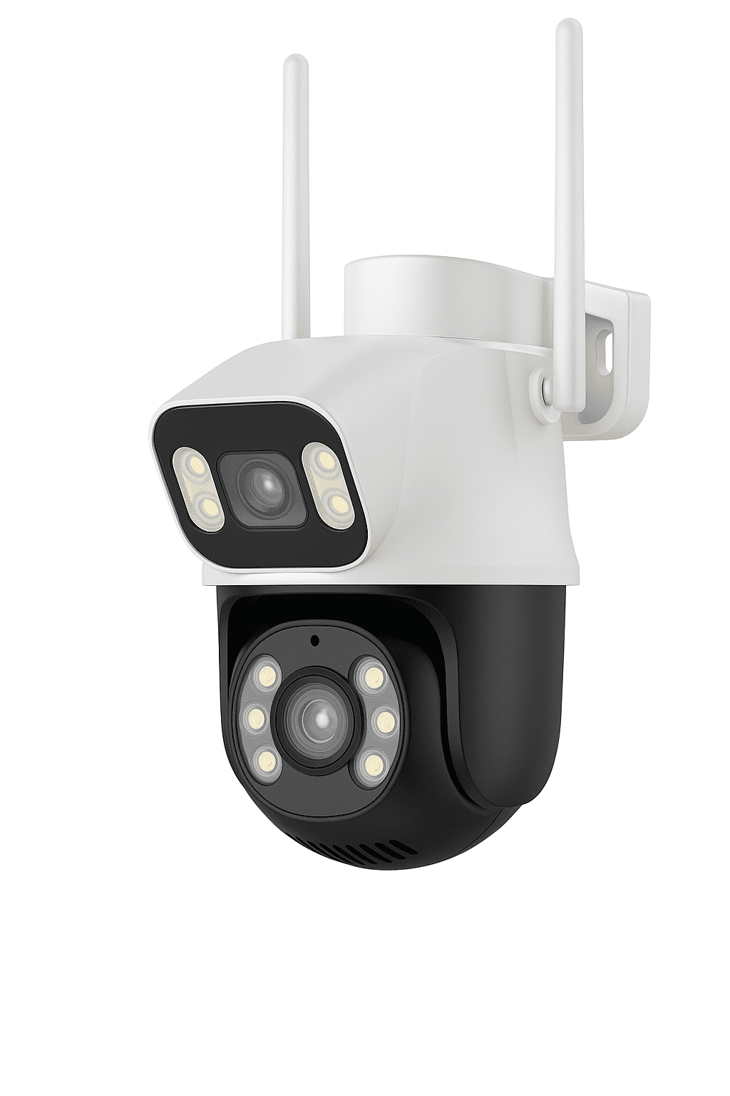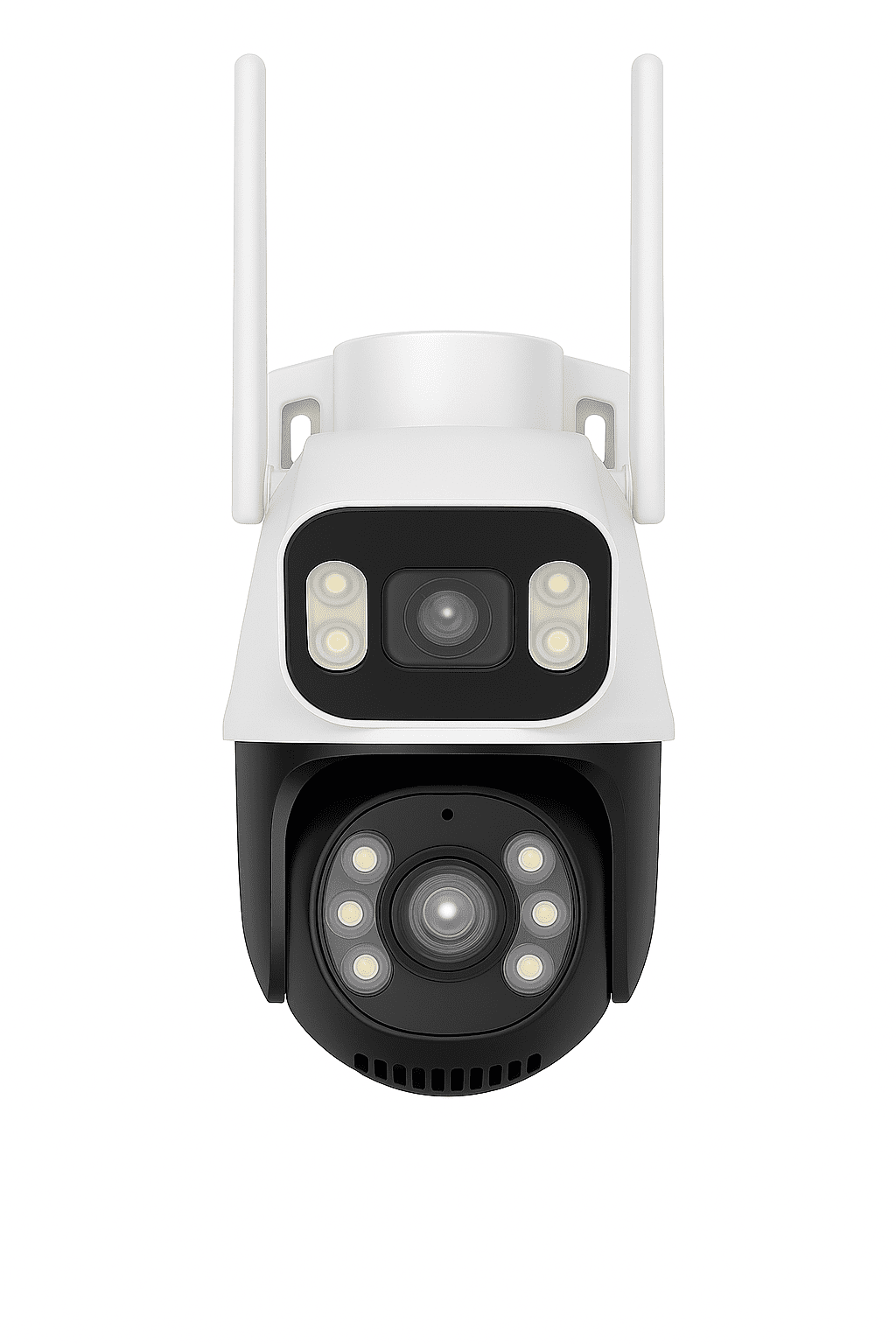 La LANTUN A28B‑PRO es una cámara IP Wi‑Fi para interiores con dos lentes simultáneas: una lente motorizada (355° horizontal y 90° vertical) y una lente fija gran angular. En conjunto ofrecen una calidad de imagen tipo 4K combinada, mejorando notablemente la definición visual.